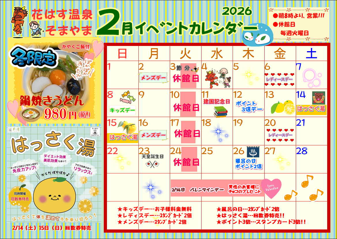 日頃より「花はす温泉そまやま」をご愛顧いただき、誠にありがとうございます。