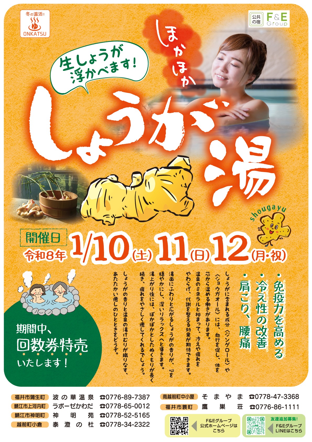 2026年1月10日(土)・11日(日)・12日(月・祝)の3日間、冬にうれしい**「しょうが湯」**を実施いたします。